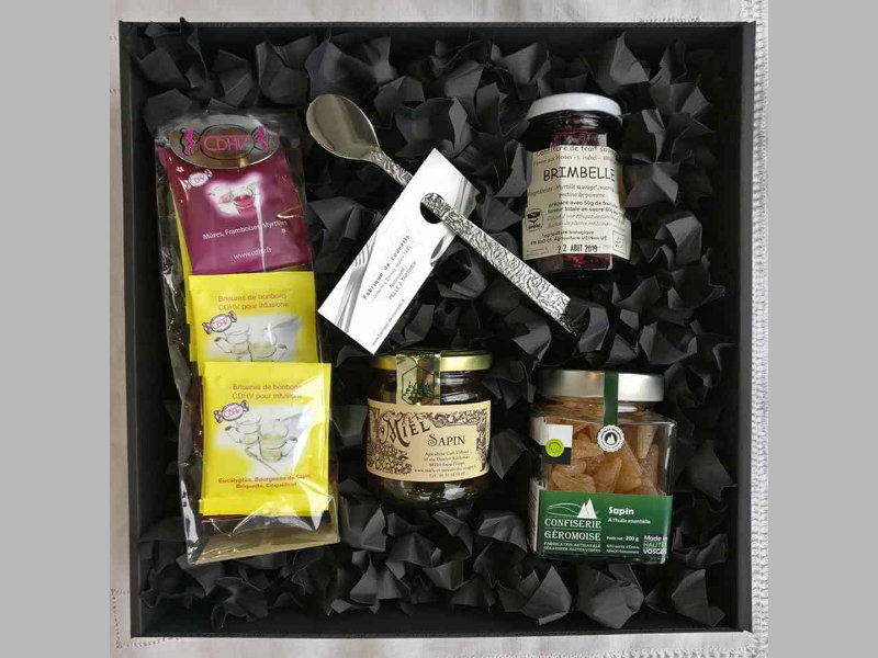 Carine, Carole et Nathalie sont unies par le sport et adeptes d’une alimentation saine, naturelle et locale. Par conséquent, elles ont eu l’idée de proposer des coffrets « made in Vosges » avec des produits du terroir. Elles nous ont ainsi sollicités pour intégrer notre miel de sapin AOP dans un nouveau coffret.